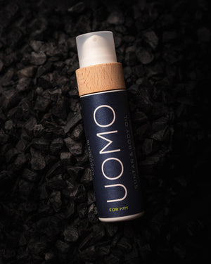 UOMO MEN: Cocos Nucifera Oil* (kokoso aliejus), Coconut Alkanes, Prunus Amygdalus Dulcis Oil* (saldžiųjų migdolų aliejus), Simmondsia Chinensis Seed Oil* (jojoba (simondsijų) aliejus), Theobroma Cacao Seed Butter* (kakavos sviestas), Tocopherol (vitaminas E), Aroma, Alpha Isomethyl Ionone**, Cinnamaldehyde**, Coumarine**, Eugenol**, Linalool**, Alpha-hexylcinnamaldehyde**.
